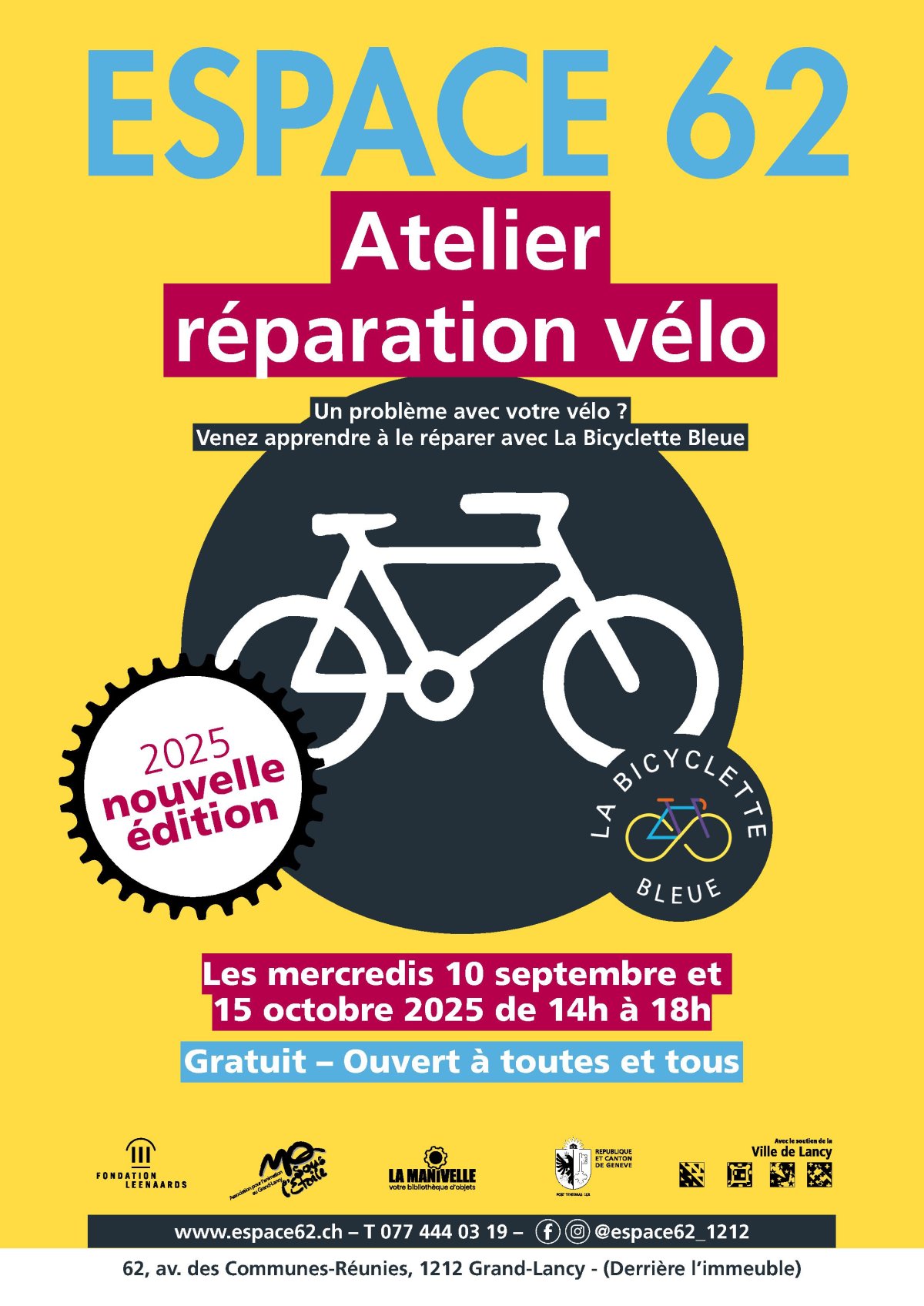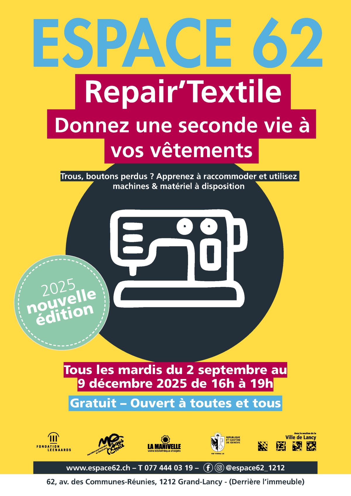 L'Unité de Développement Durable de la Ville de Lancy, en partenariat avec la Maison de quartier Sous l'Etoile, vous propose des ateliers de réparation à l'Espace 62 !